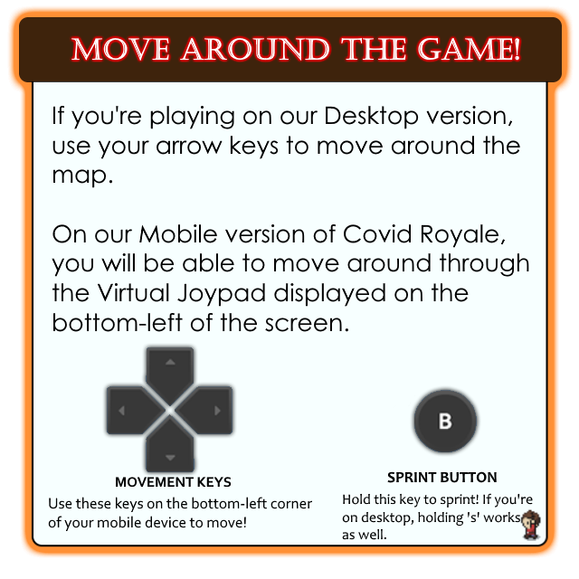 Hello! Goose Logic here. A group of students building what we love. Games. We're inspired by the impact games can have on a person though process and meaning. Like everyone else, we've been effected by the COVID-19 pandemic. Our latest project is Covid-Royale. This is our effort to provide some awareness and togetherness though the medium of a battle royale style game.